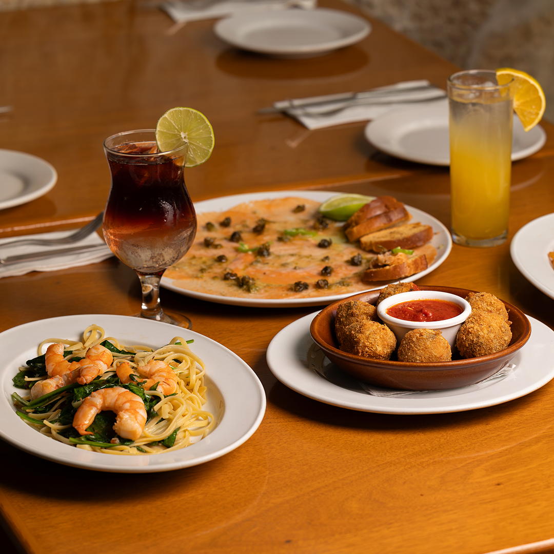 Nuestras auténticas recetas, más el toque de la experiencia del chef Italiano, con una gran trayectoria, crea una experiencia al paladar. Tenemos sugerencias del chef además de nuestro amplio menú donde puede elegir entre antipastos, pastas, carnes, pescados, pollo y mariscos.